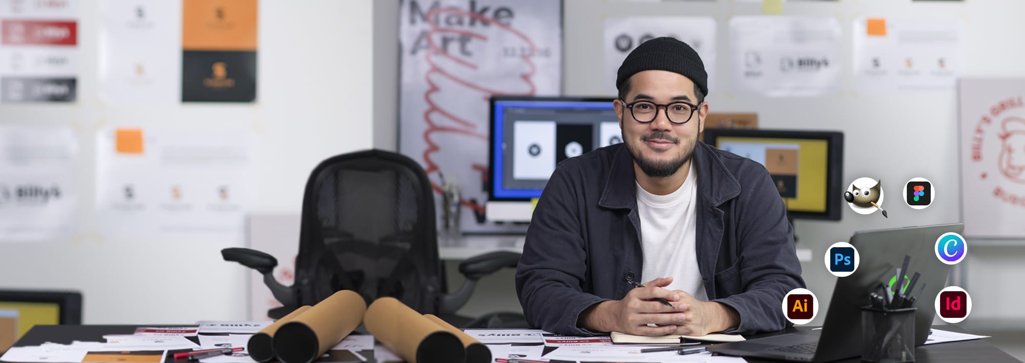 Supports a merchandising company serving apparel-related clients. Responsible for designing marketing materials, apparel concepts, and production-ready artwork for multiple brands. Uses Adobe Creative Suite and Procreate for both digital layouts and freehand illustrations.